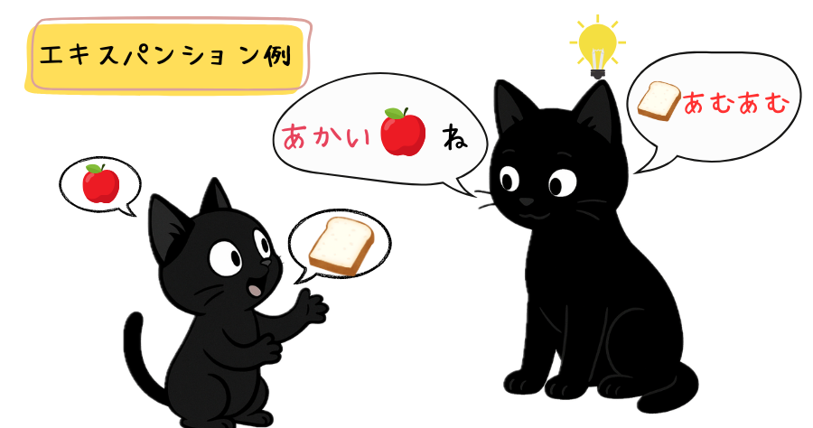 発語してくれる単語に、動き・大きさ・色などの情報を足してあげる(エキスパンション)