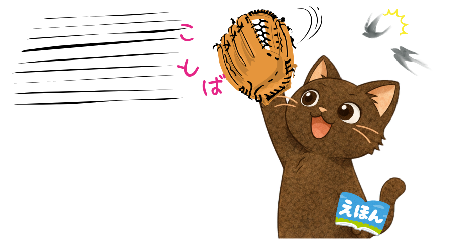 キャッチしやすい言葉は主に名詞(ママ・パパなど具体語)、もしくはよく使う動詞(ちょうだい・おねがい・ねんねなどジェスチャーがつけられるもの)やオノマトペ(ブーブー ビューン など)です。